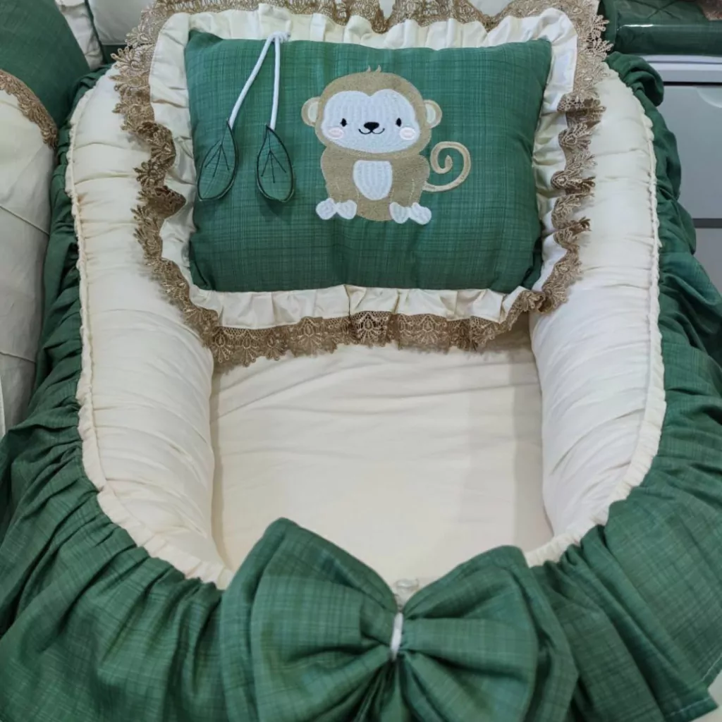 O Ninho Redutor Moisés para Bebê Menino Luxo Safari Selva Verde Folha oferece delicadeza e aconchego ao seu neném. Nos primeiros meses de vida, o bebê pode não se sentir confortável em dormir no berço, por ser um espaço grande onde ele não está acostumado. Nesse momento, o ninho redutor pode ser seu maior aliado, trazendo conforto e qualidade ao seu pequeno, fazendo-o se sentir acolhido, como se estivesse no útero da mamãe. Podendo ser transportado para diversos lugares!